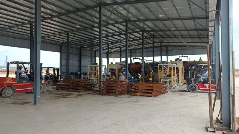 發(fā)貨不是終點(diǎn),確保設備順利投產(chǎn)并持續穩定運行才是我們的目標。根據和客戶(hù)溝通的時(shí)間節點(diǎn),2023年8月份我司派售后服務(wù)部技術(shù)人員前往印尼現場(chǎng)進(jìn)行指導安裝調試,通過(guò)和業(yè)主的緊密配合,奮戰30天,兩條QT6-15全自動(dòng)砌塊機,全自動(dòng)離線(xiàn)碼垛機,全自動(dòng)打包機安裝完成,順利出磚,碼垛,打包。在對客戶(hù)操作人員進(jìn)行培訓又穩定運行30天后,得到客戶(hù)的確認和肯定,我司技術(shù)人員返回國內。